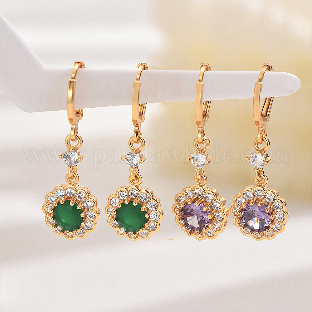 Винтажные латунные серьги-кольца с цветком из кубического циркония, золотые