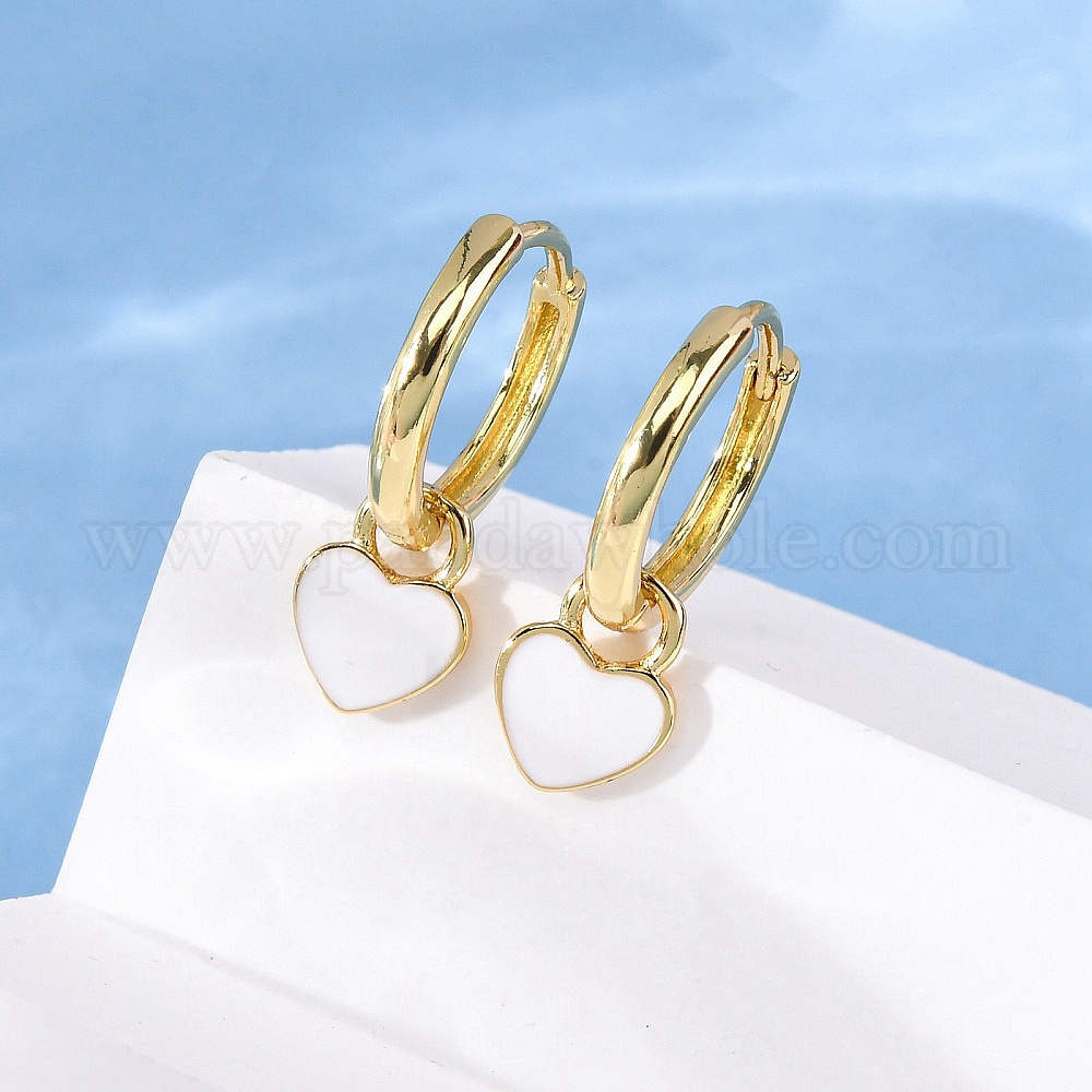 Серьги-кольца из латуни с эмалью в форме сердца, стойки покрытие, долговечный, без свинца и без кадмия (034E2W)