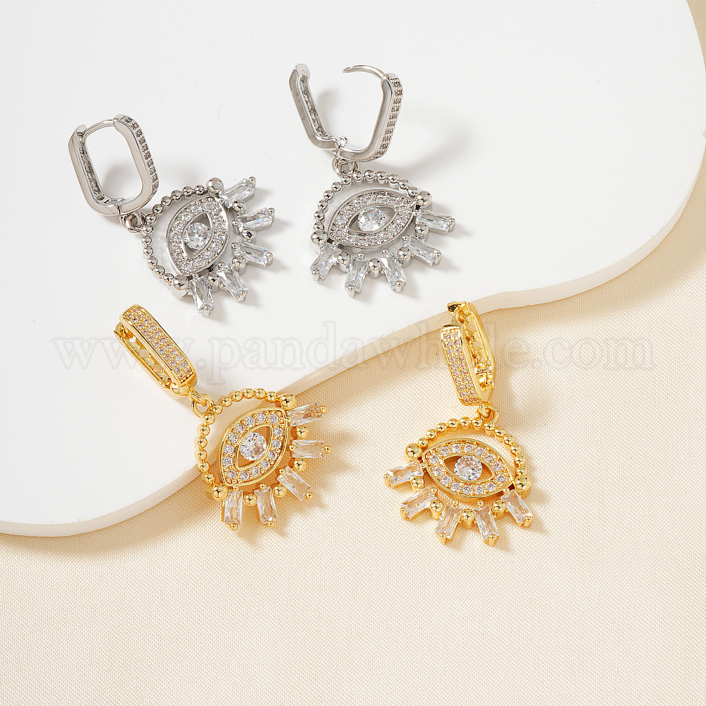 Модные серьги-кольца из латуни с прозрачным кубическим цирконием