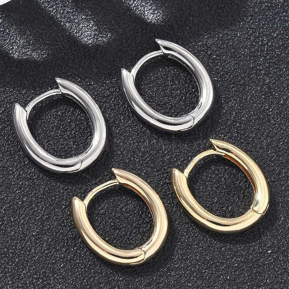 • Платинированный Овальные серьги-кольца из латуни, Реальная платина, 14x13x2.5 мм