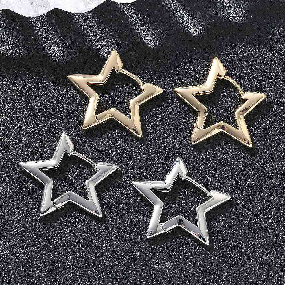 • Платинированный Латунные серьги обруча, звезда, Реальная платина, 17x20x2 мм