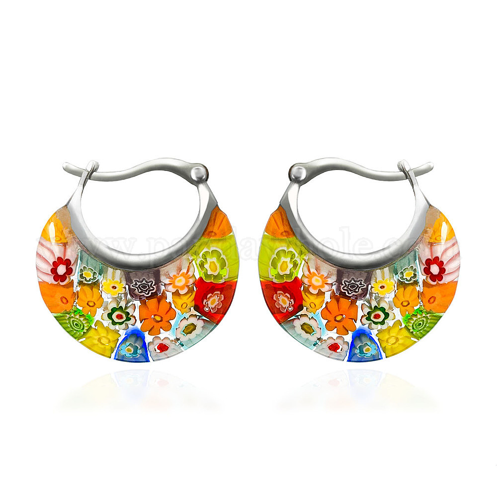Плоские круглые 304 серьги-кольца из нержавеющей стали миллефиори, цвет нержавеющей стали