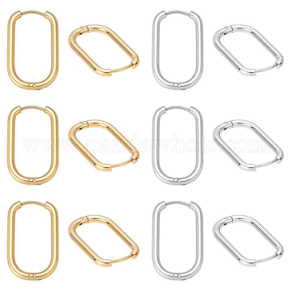 6 пары 2 цвета 304 овальные серьги-кольца из нержавеющей стали (034MQC)