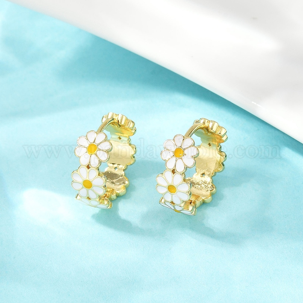 Серьги-кольца из латуни с эмалью, цветок, без кадмия и без свинца, стойки покрытие, долговечный (034ZGB)