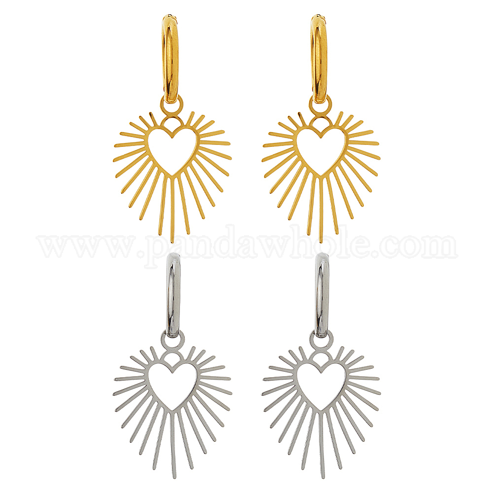 2пары 2 цвета 304 серьги-кольца из нержавеющей стали, сердце