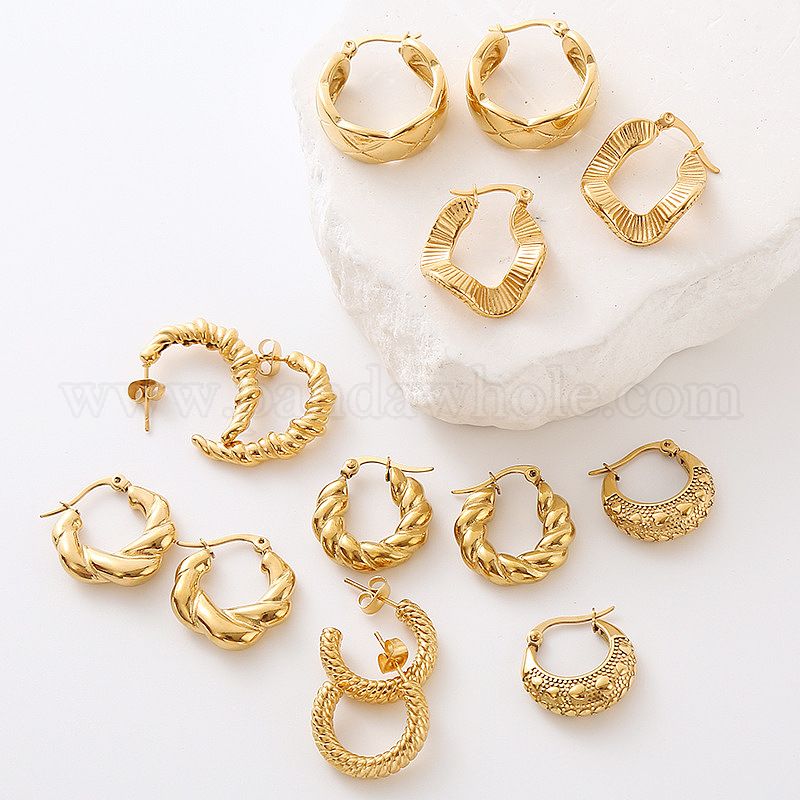 • Золотой Серьги-кольца из нержавеющей стали, золотые, 20x20 мм