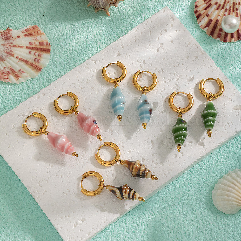 Серьги-кольца в форме ракушки из нержавеющей стали, реальный 18 k позолоченный
