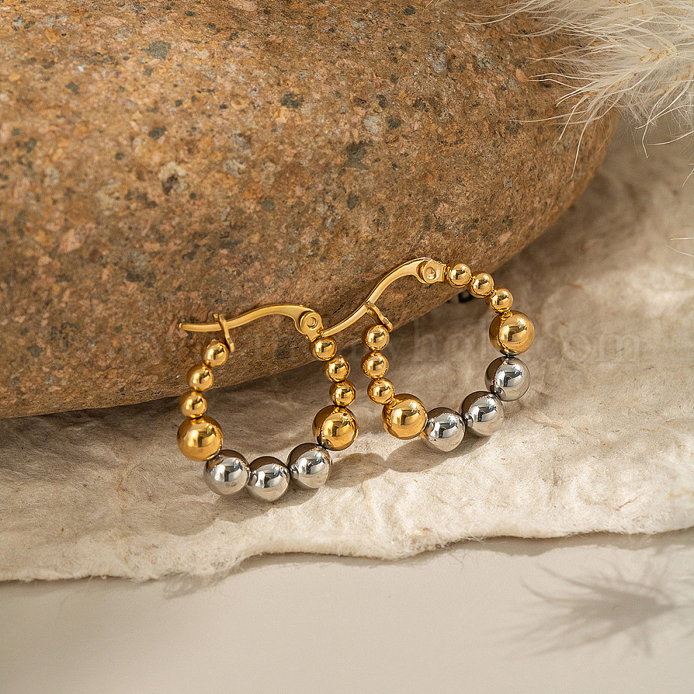 Круглые серьги-кольца из нержавеющей стали двухцветные (035YXZ)