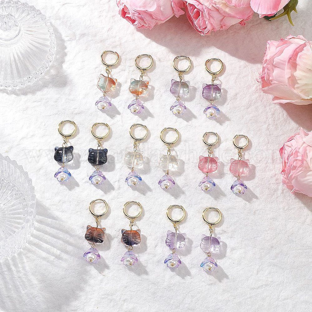 7 пары сережек-колец в стиле лэмпворк, форма кошки (0365MC)