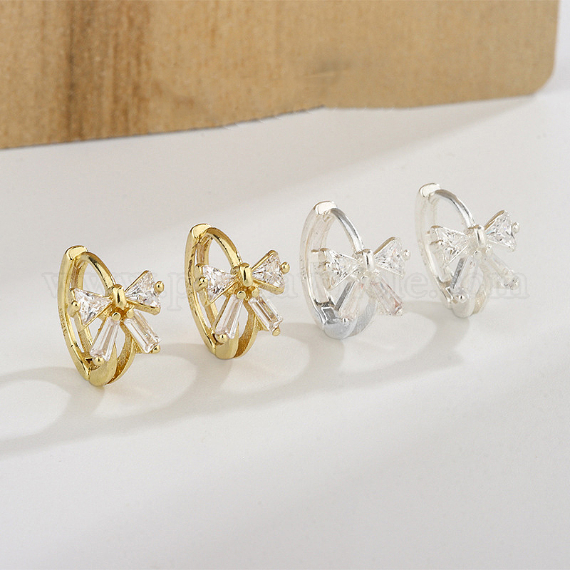 Серьги-кольца с бантом из латуни и кубическим цирконием