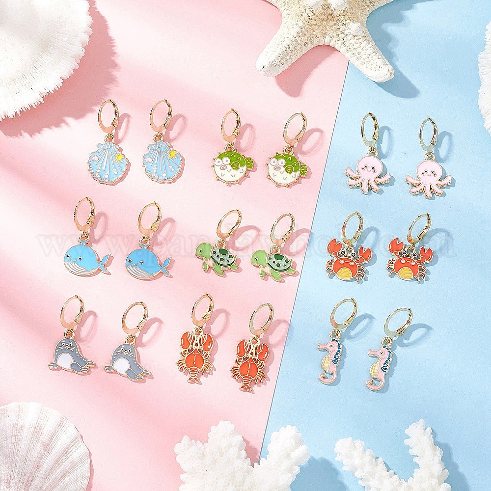 9пара серег-подвесок из сплава с эмалью, океанские животные, разнообразные (036ADR)