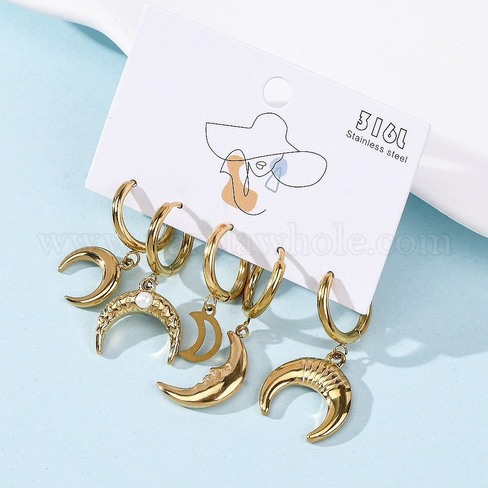 5шт. 304 серьги-кольца из нержавеющей стали, луна, с пластиковой имитационной жемчужиной