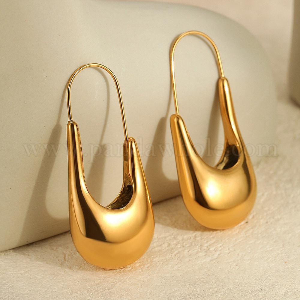 • Золотой Серьги из 304 нержавеющей стали, пакет, золотые, 47x20 мм