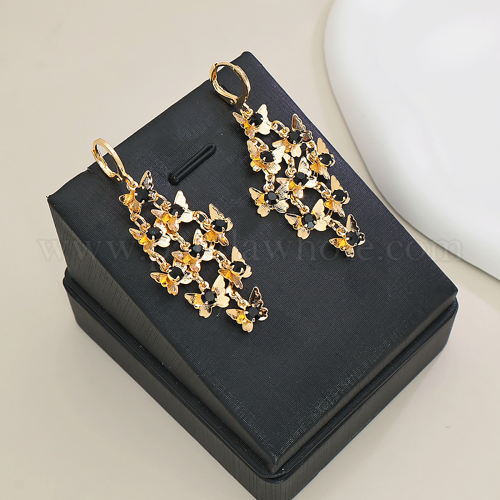 Серьги-кольца с кисточками в виде бабочки из латуни, со стразами