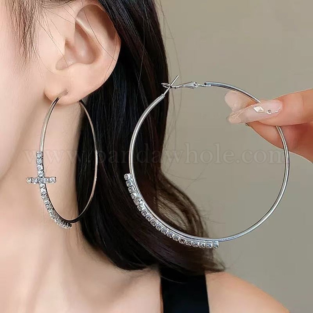 Серьги-кольца из сплава крест-накрест с кристаллами и стразами
