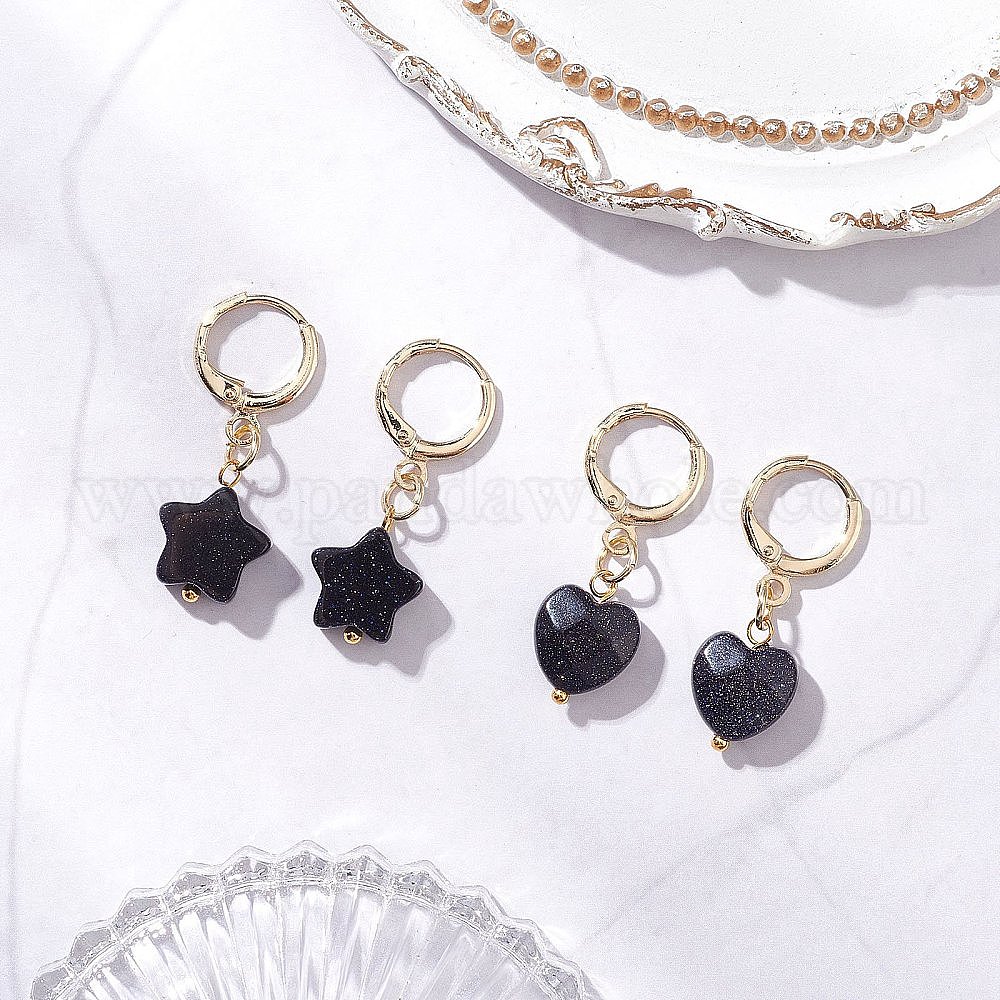 2 пары серег из латуни с синтетическим синим золотом, круглый и сердце, золотые