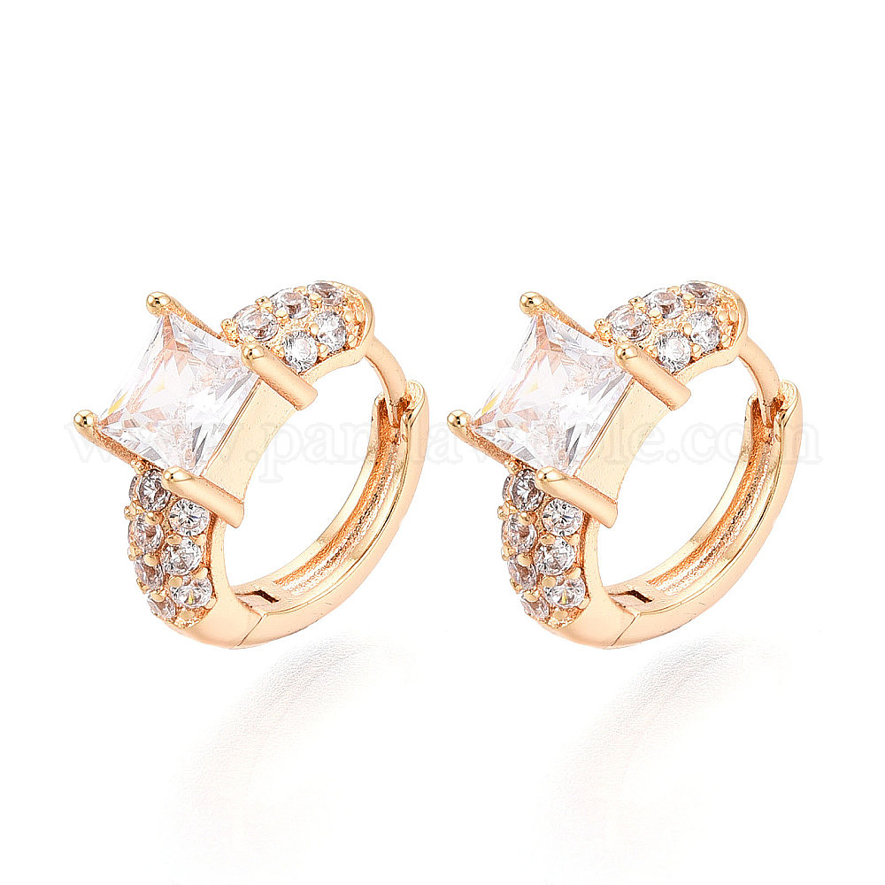Квадратные серьги-кольца с микропаве из прозрачных кубических цирконий из латуни