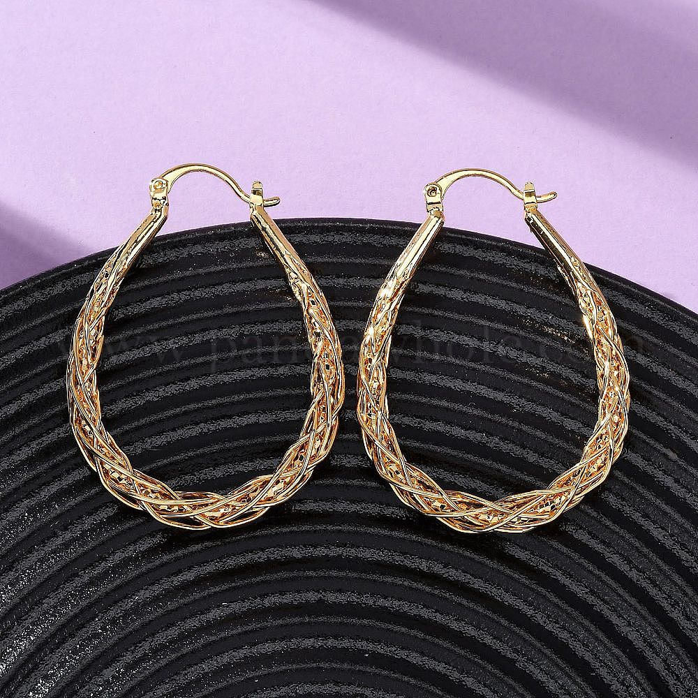 • Настоящее золото 18K Латунные слеза серьги обруча, без никеля , реальный 18 k позолоченный, 43x31x4.5 мм