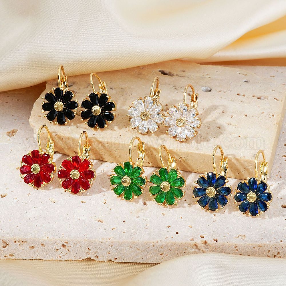 Серьги-кольца из латуни с цветком, с кубического циркония