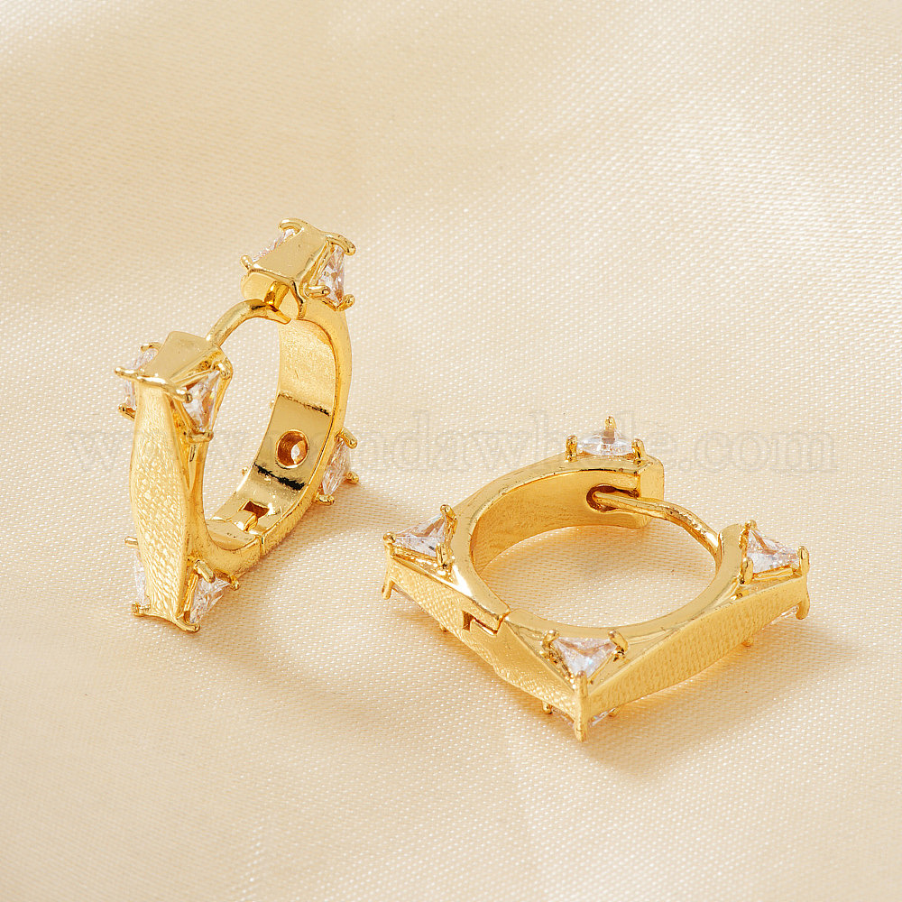 • Золотой Латунные серьги квадратной обручем, с четким кубического циркония, золотые, 17x17x6 мм