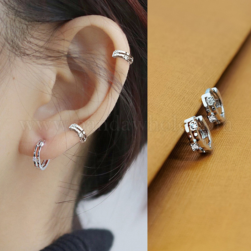 • Серебро Серьги-кольца из латуни с кристаллами и стразами, серебряные, 10 мм