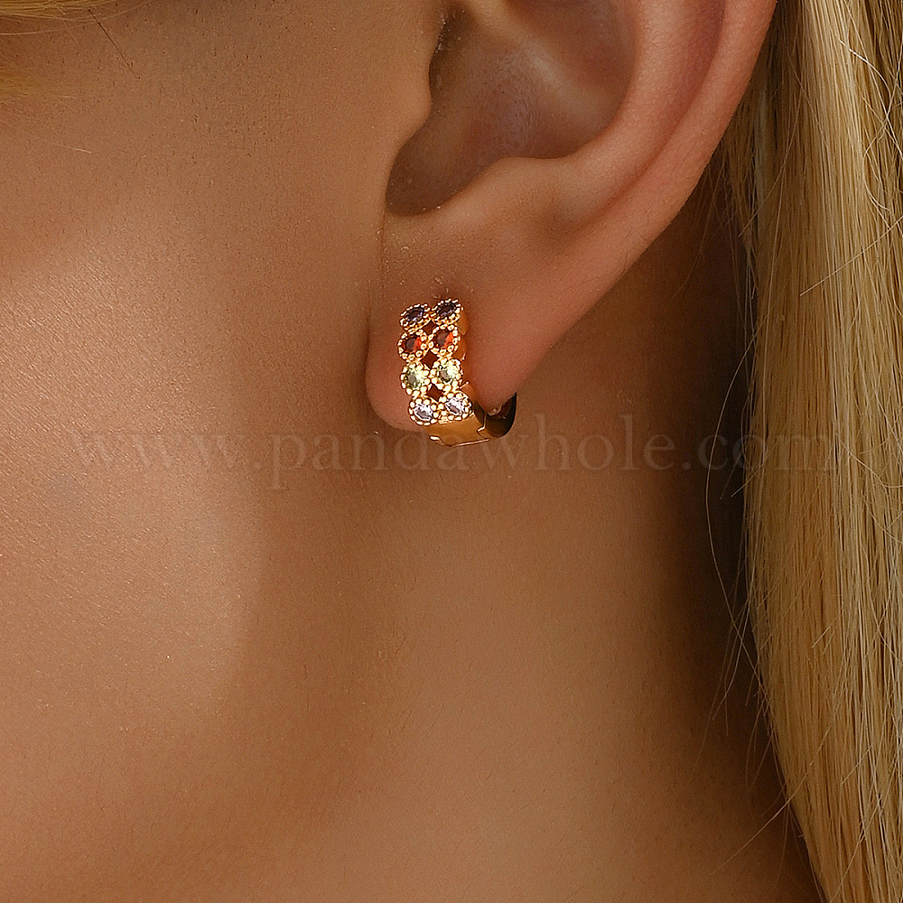 Латунные плоские круглые серьги-кольца, золотые, с кубического циркония