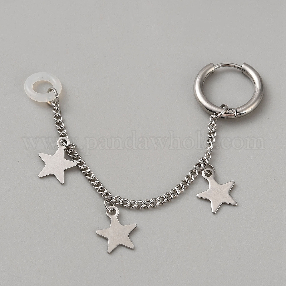 Серьги-кольца из нержавеющей стали в форме звезды, цепочка-оберег