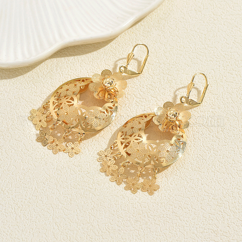 • Золотой Серьги-кольца с цветами из богемской латуни, золотые, 70x31 мм