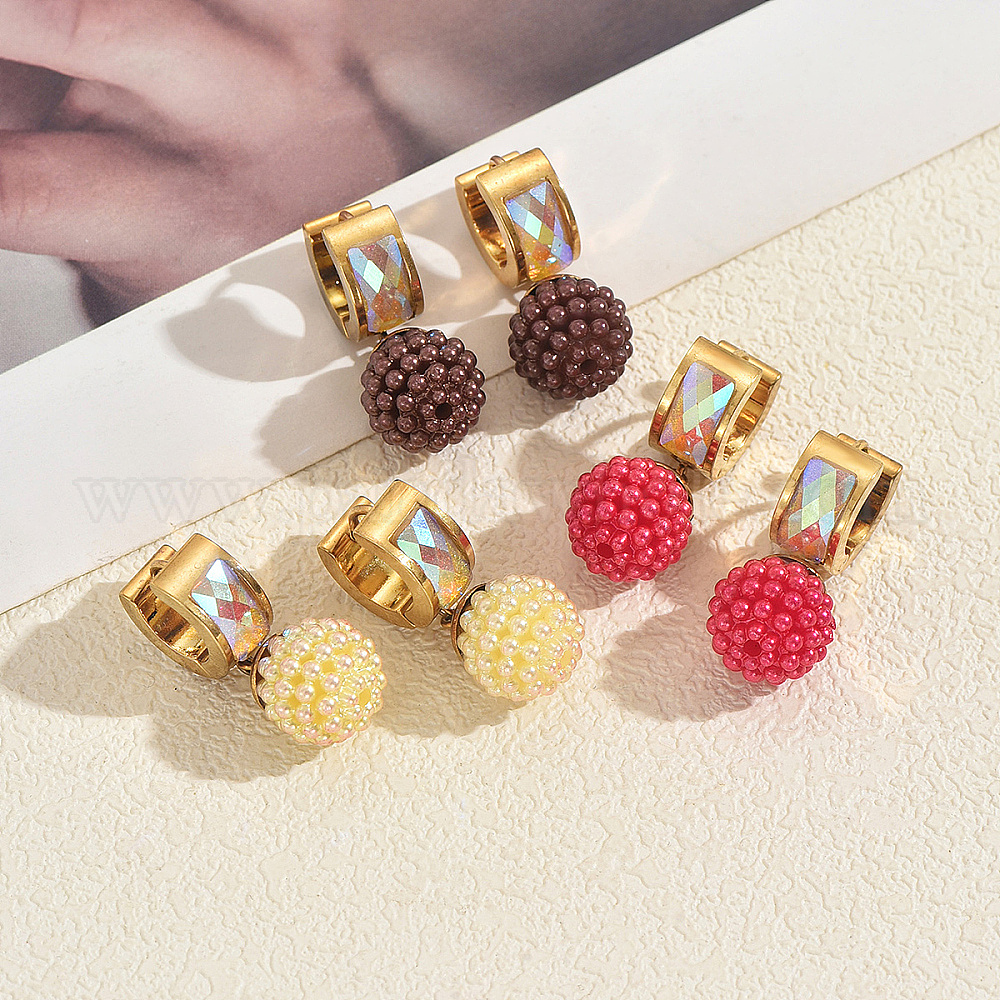 • Красный Круглые серьги-кольца из нержавеющей стали и пластика, золотые, красные, 30x12 мм