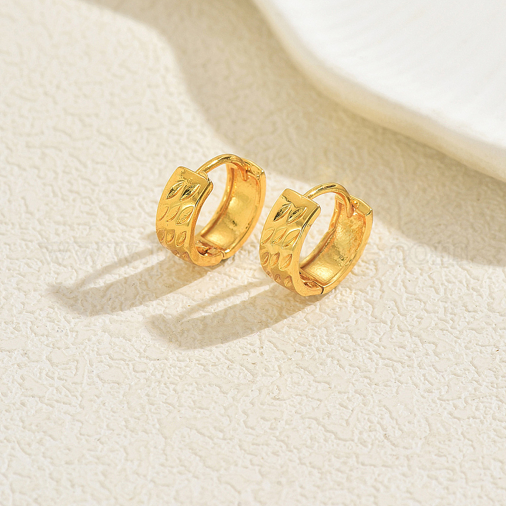 • Золотой Серьги-кольца из латуни с узором из листьев, золотые, 14x5 мм