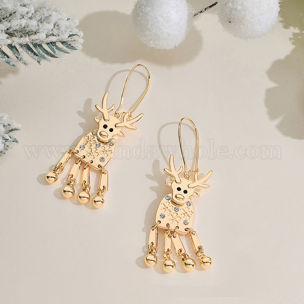Серьги обруча сплава горный хрусталь, Рождественский олень