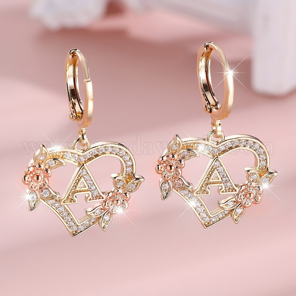 Серьги-кольца из латуни с микропаве и прозрачным кубическим цирконием в форме сердца, золотые