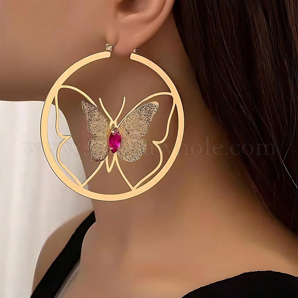 Серьги-кольца из сплава и страз, кольцо с бабочкой, золотые