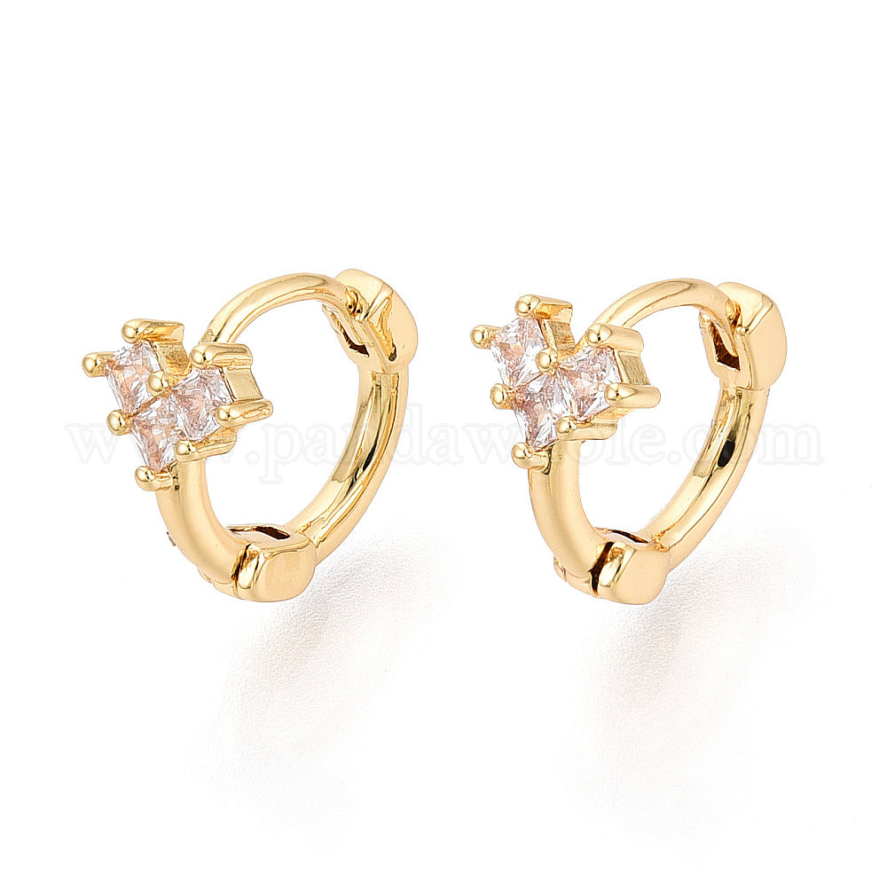 Серьги-кольца из латуни с микропаве и прозрачным кубическим цирконием в форме сердца