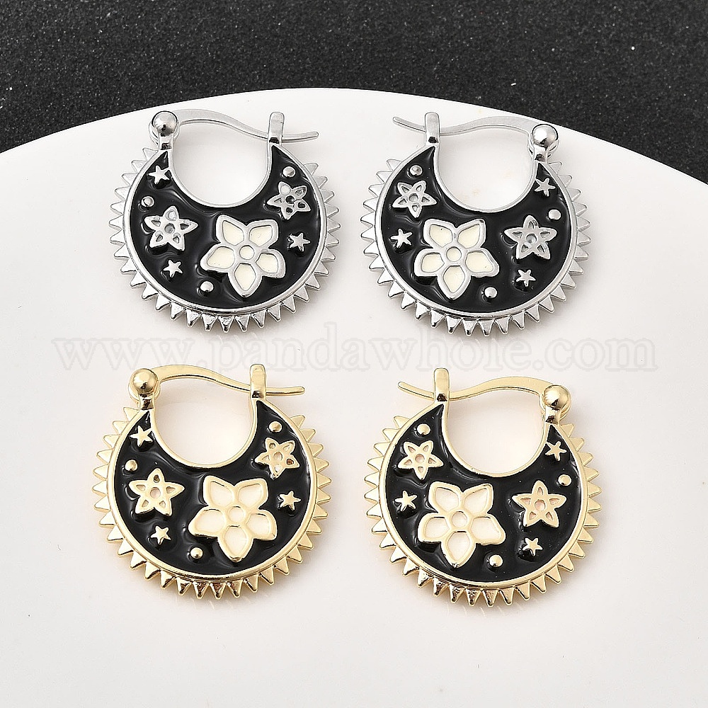 Серьги-кольца с цветочной эмалью из латуни
