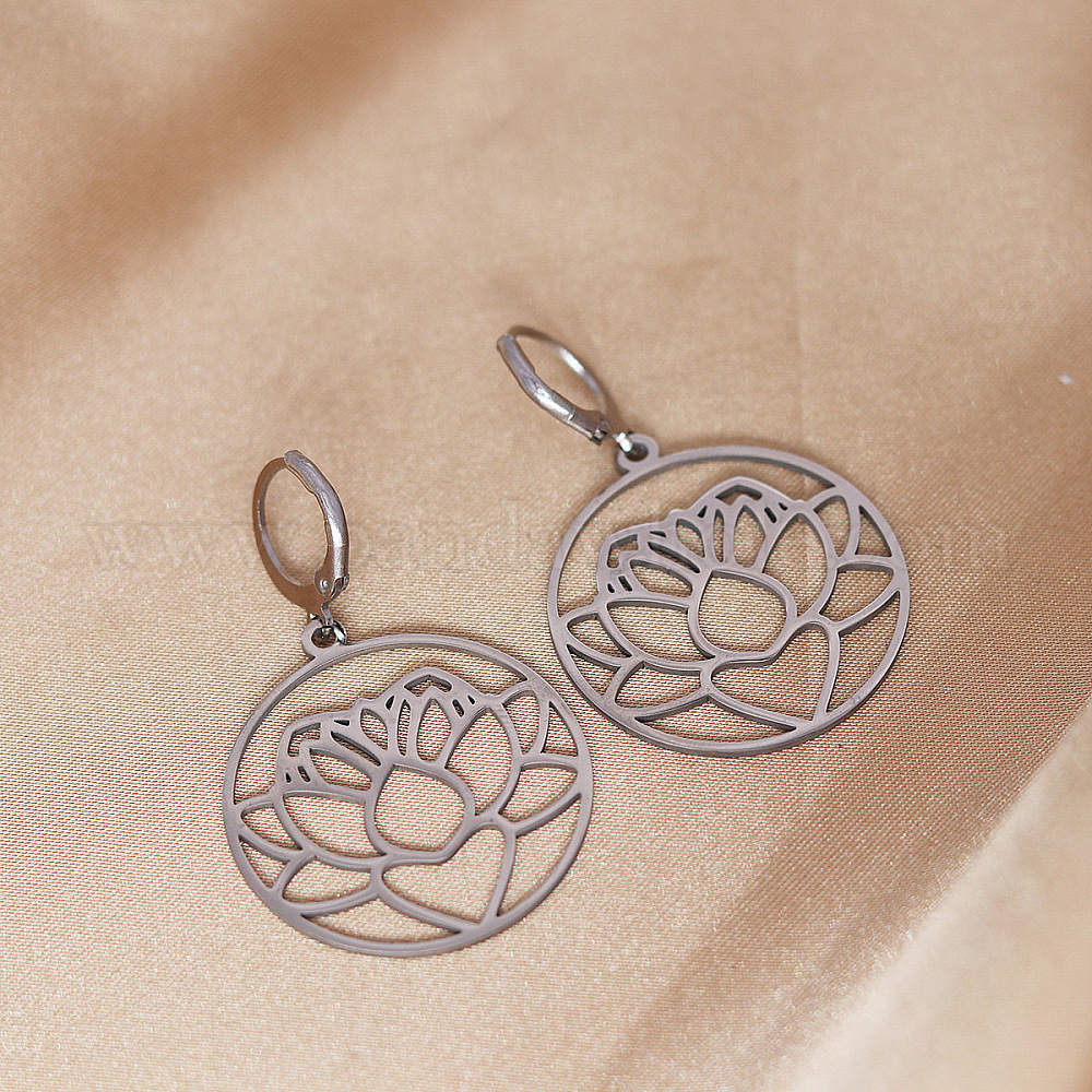 Серьги из 201 нержавеющей стали, полые плоские круглые с цветком
