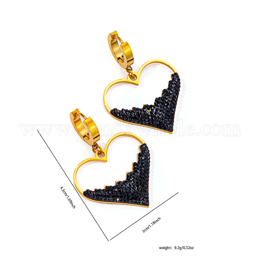 304 Серьги-кольца из нержавеющей стали со стразами, сердце, золотые