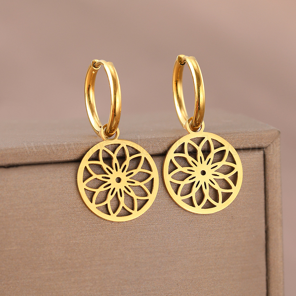 Серьги из 304 нержавеющей стали, кольцо с цветочным узором