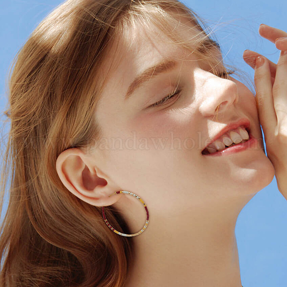Серьги-кольца ручной работы из стеклянного бисера., С 304 результатами из нержавеющей стали, золотые