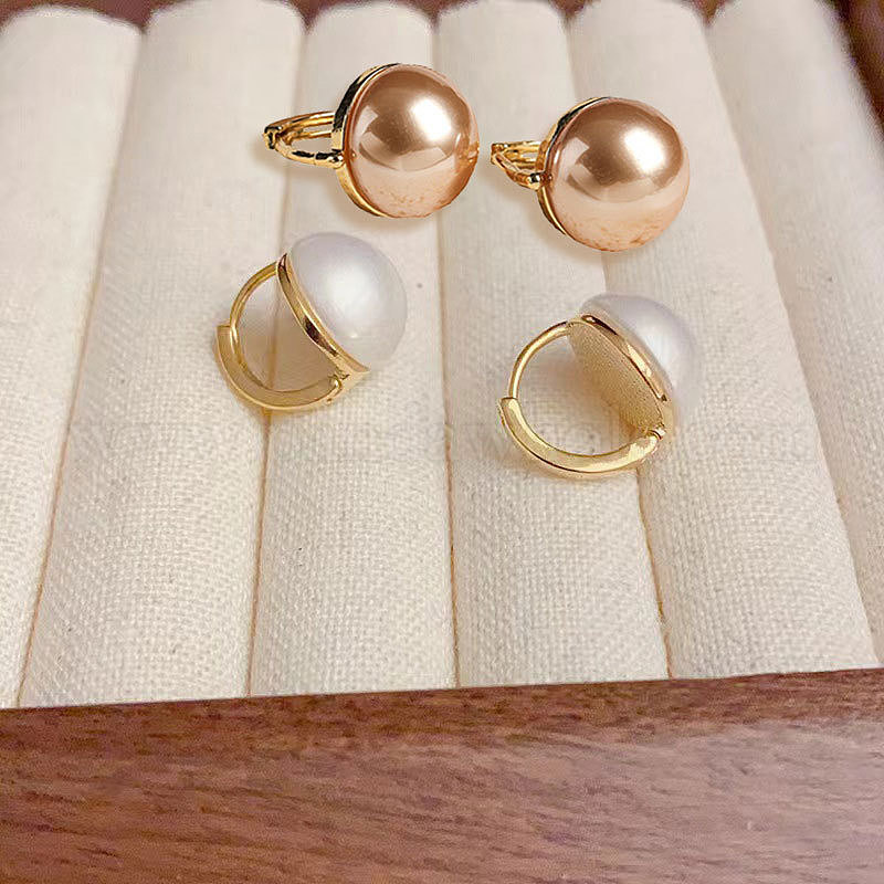 Серьги-кольца из латуни и пластика с жемчугом, полукруглый, золотые