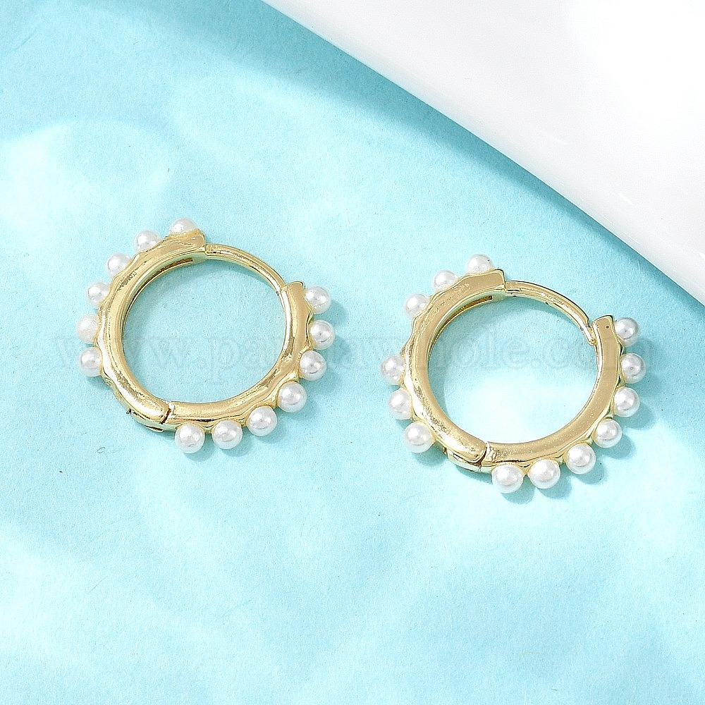 Круглые серьги-кольца из латуни и АБС-пластика с имитацией жемчуга., без кадмия и без свинца, долговечный, стойки покрытие