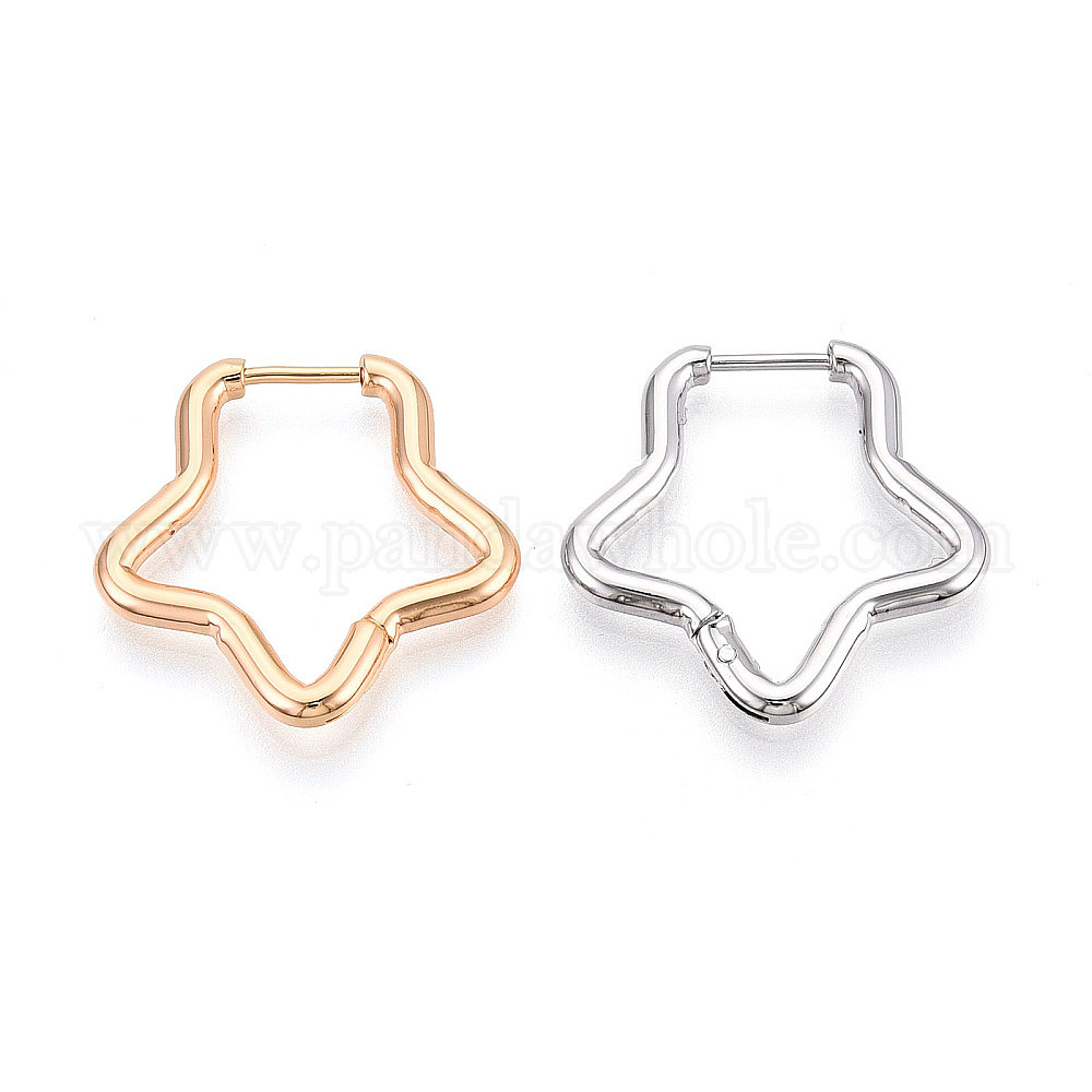 • Настоящее золото 18K Серьги из 304 нержавеющей стали, звезда, реальный 18 k позолоченный, 23x23x2.5 мм