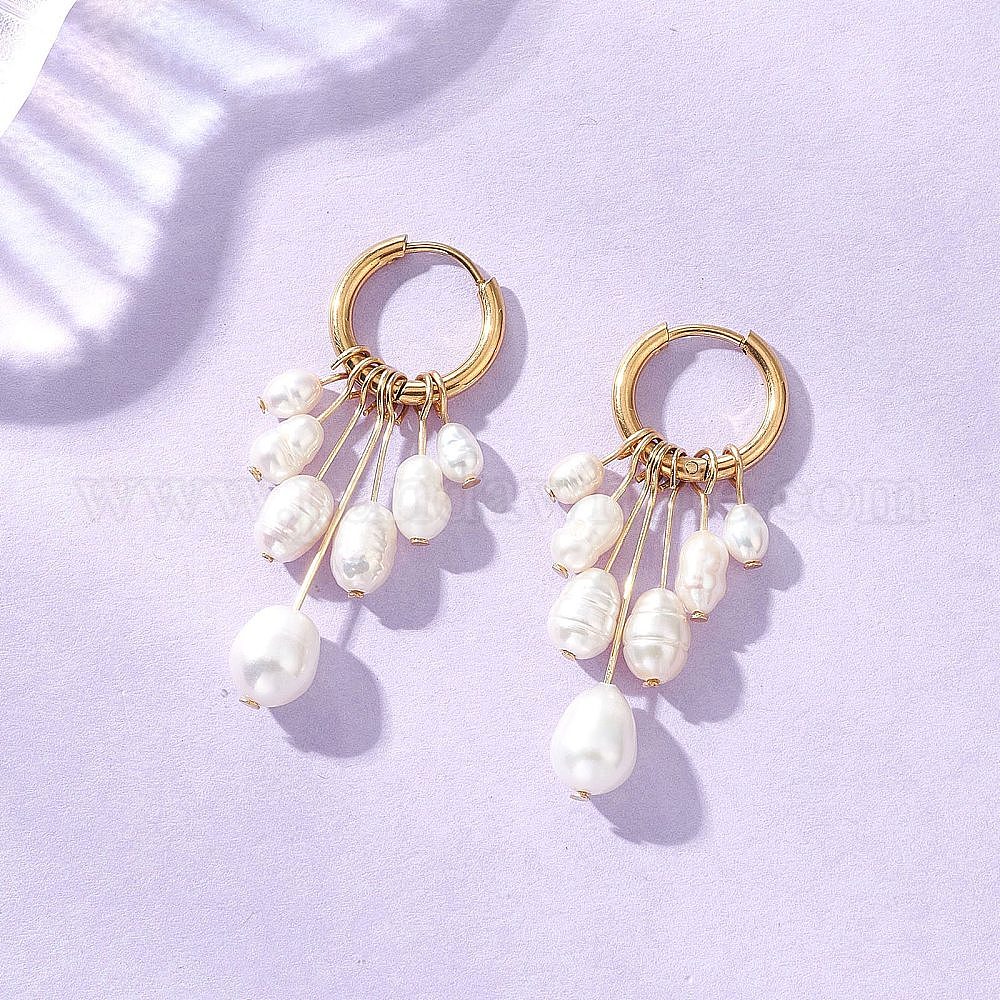 Серьги-кольца с натуральным жемчугом, с 304 фурнитурой из нержавеющей стали