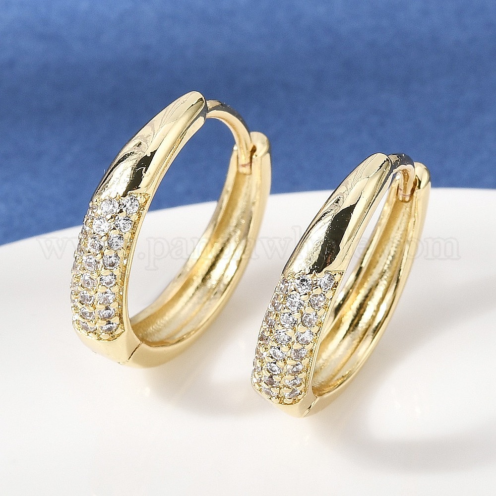 • Настоящее золото 18K Серьги-кольца из латуни с прозрачным кубическим цирконием, без кадмия и без свинца, реальный 18 k позолоченный, 19.5x4 мм