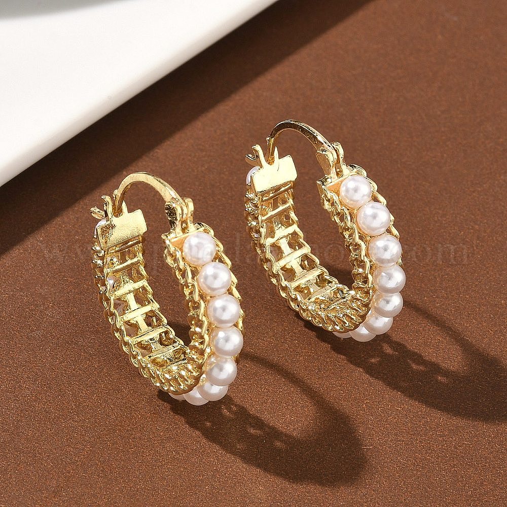 Латунные серьги обруча, с пластмассовой жемчужиной abs, без кадмия и без свинца, долговечный, стойки покрытие, цепочка-оберег
