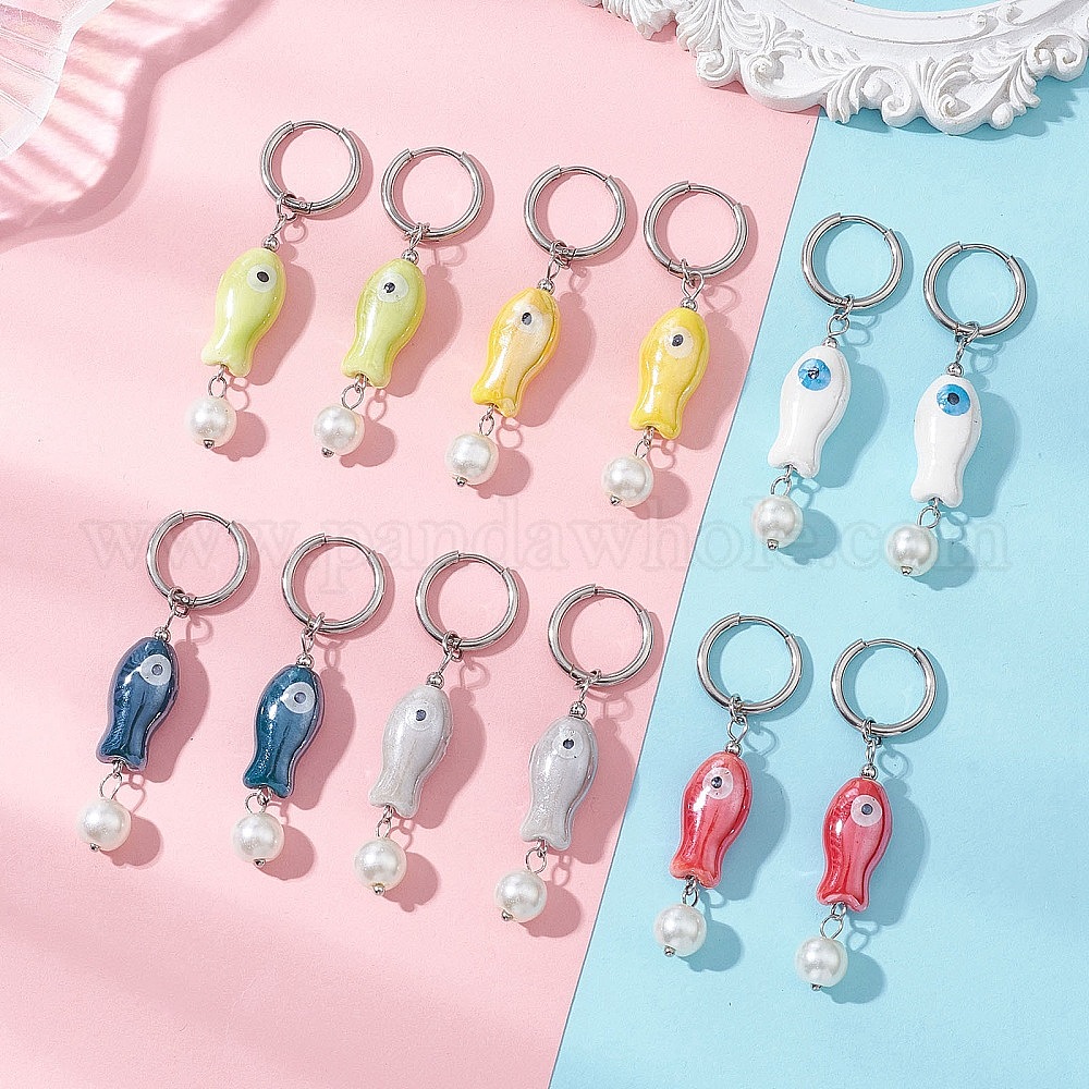 Серьги-кольца ручной работы из фарфора, с 202 фурнитурой для сережек-колец Huggie Hoop из нержавеющей стали, рыба, золотые