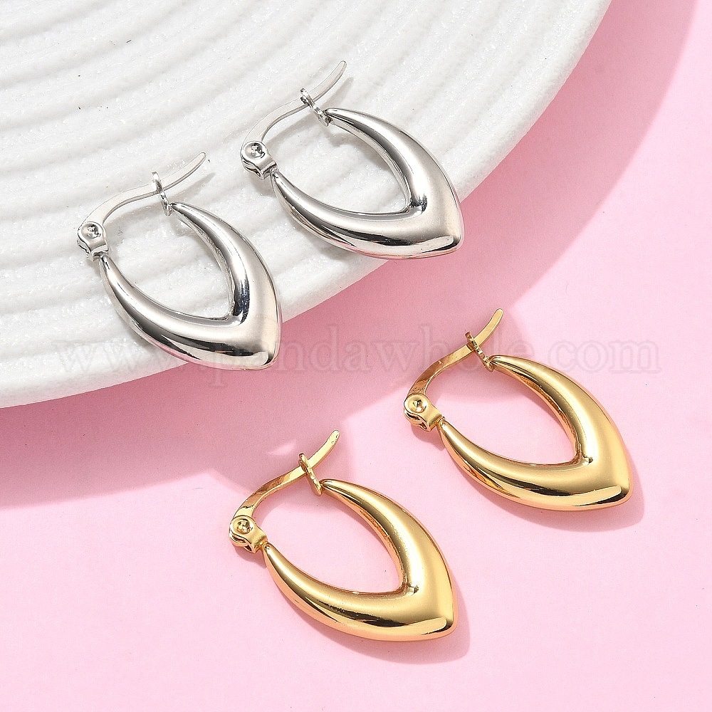 • Золотой V-образные 201 серьги-кольца из нержавеющей стали, с 304 штифтов из нержавеющей стали, вакуумное покрытие pvd, золотые, 23.5x15x4 мм
