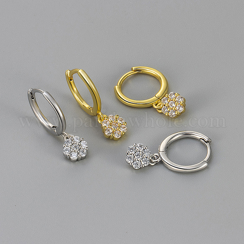 • Золотой Серьги-кольца из латуни с прозрачными кубическими циркониями ко Дню святого Валентина, цветок, золотые, 19x5.5 мм