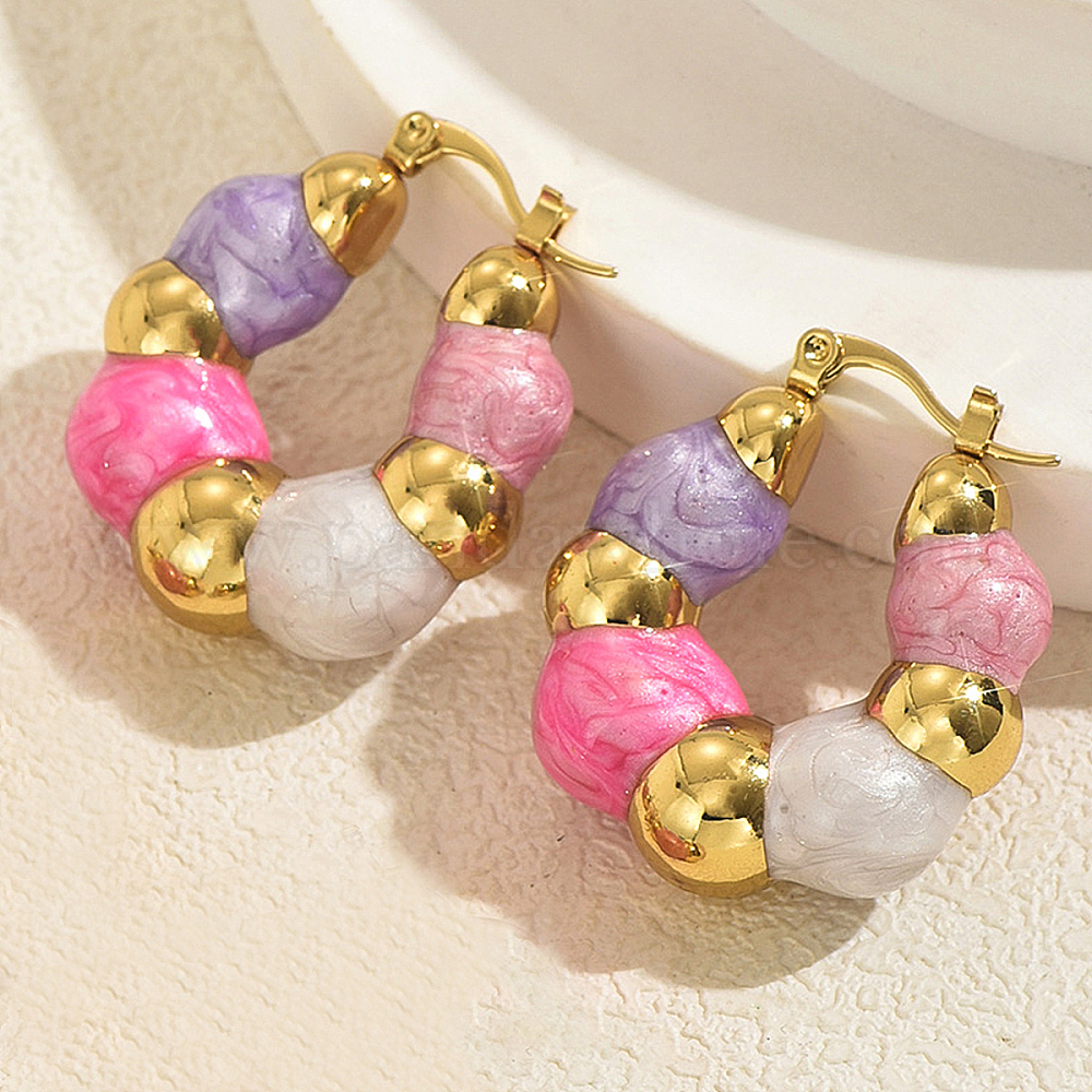 201 серьги-кольца из нержавеющей стали с бусинами., с эмалью, золотые (03B6R9)