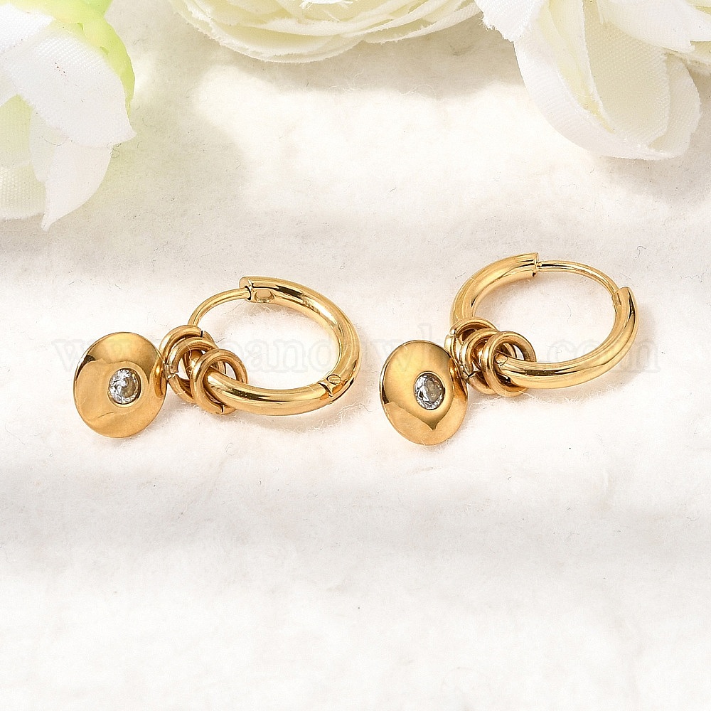 304 серьги-кольца из нержавеющей стали с прозрачным кубическим цирконием для женщин, плоско-круглые